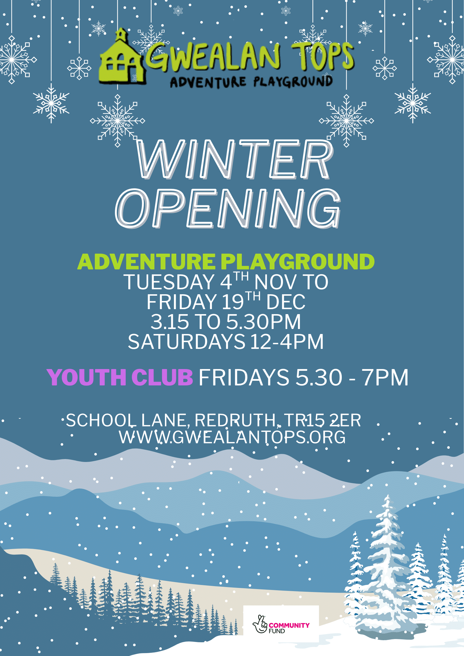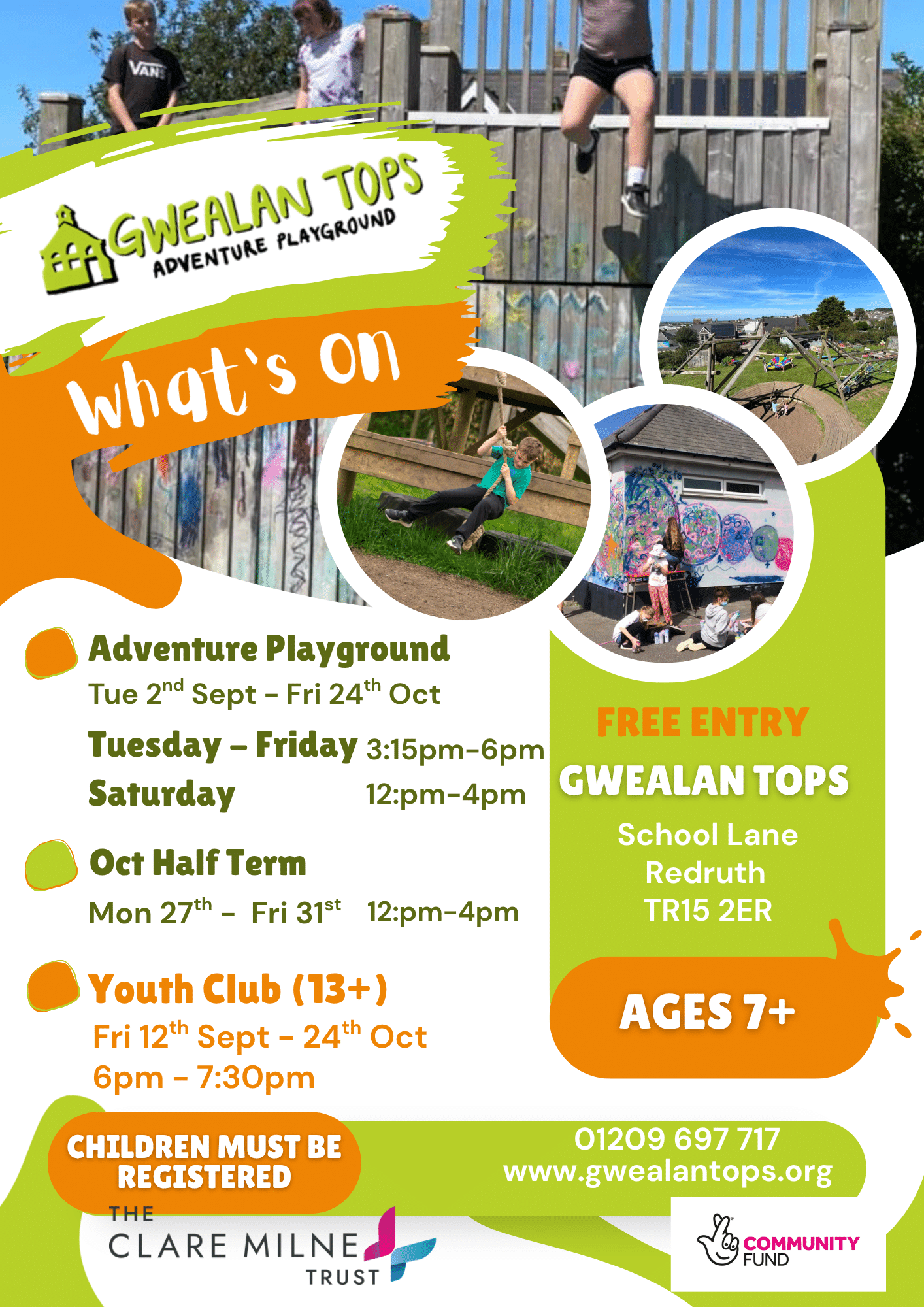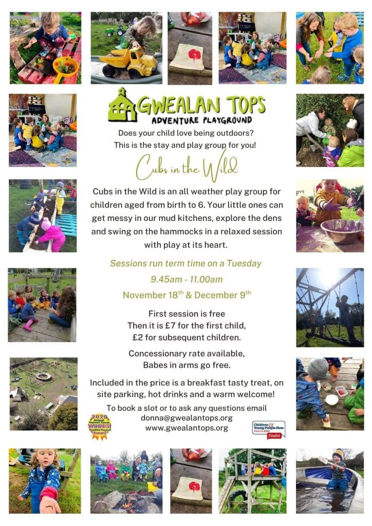 - Once you have registered your child you need to contact manager@gwealantops.org to arrange a day and time for you and your child to attend an induction tour. This only takes around 20 minutes and is a general introduction to the playground, so you all know what to expect.