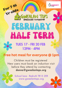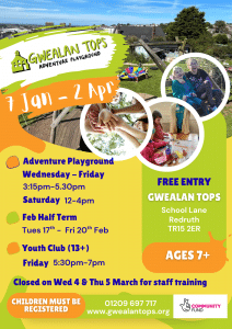 If you have not been to the playground before you need to arrange your first visit via email to manager@gwealantops.org